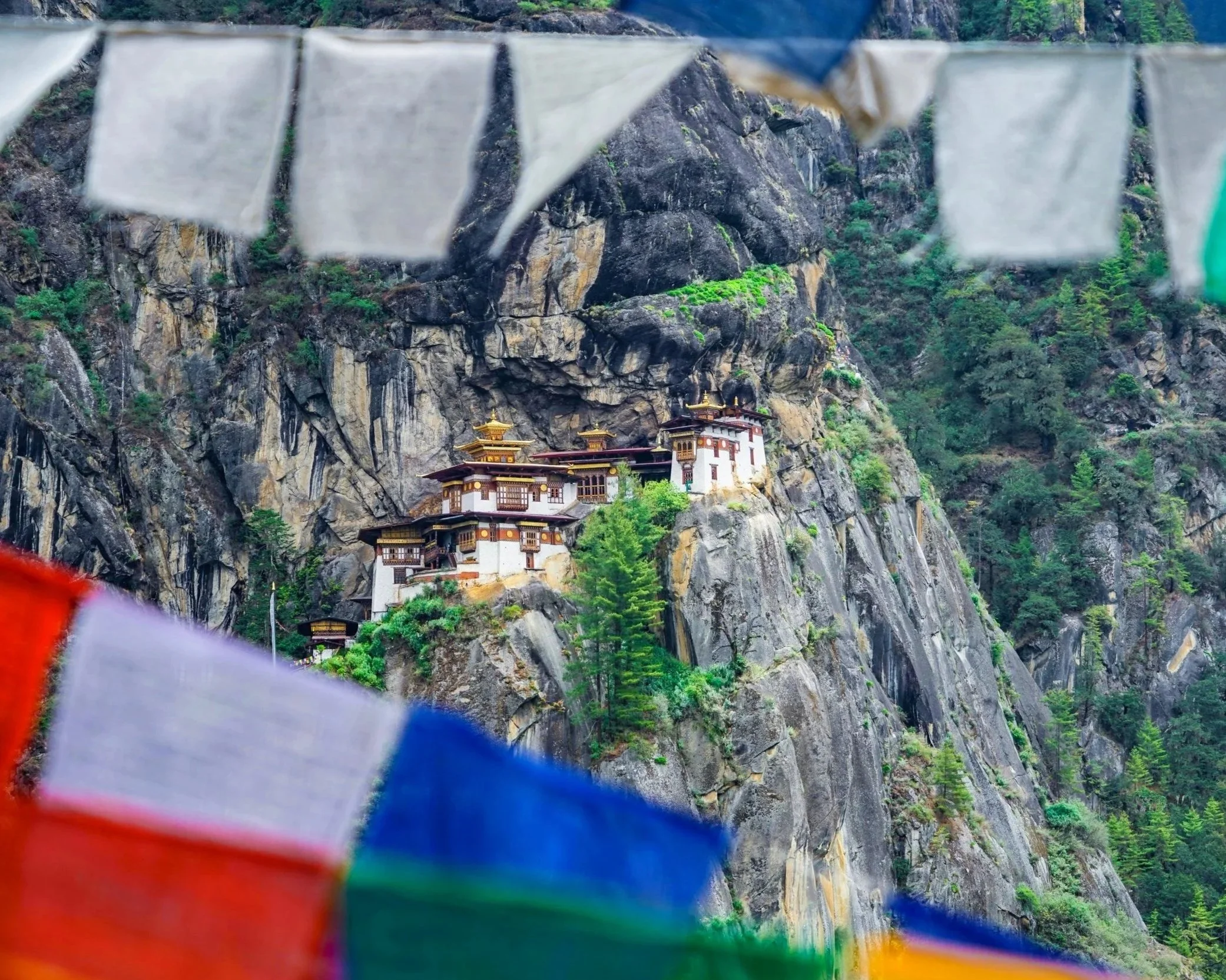 Making the pilgrimage to the sacred Taktsang Monastery, or Tiger’s Nest, dramatically perched on a cliffside